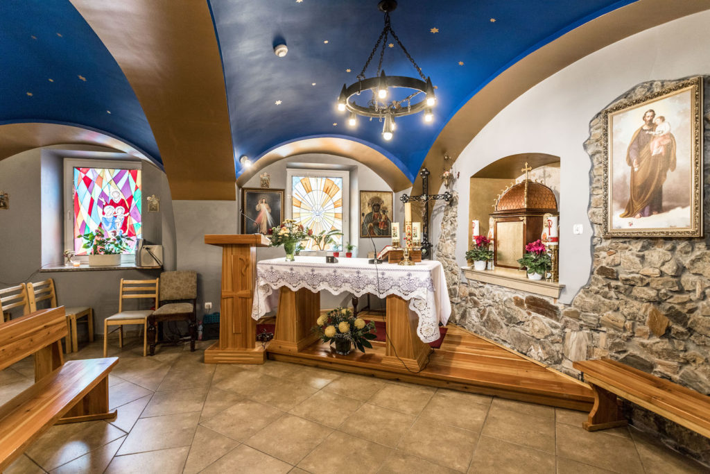 Miejsce wyciszenia i modlitwy – Kaplica – tutaj odprawiane są niedzielne Msze Święte